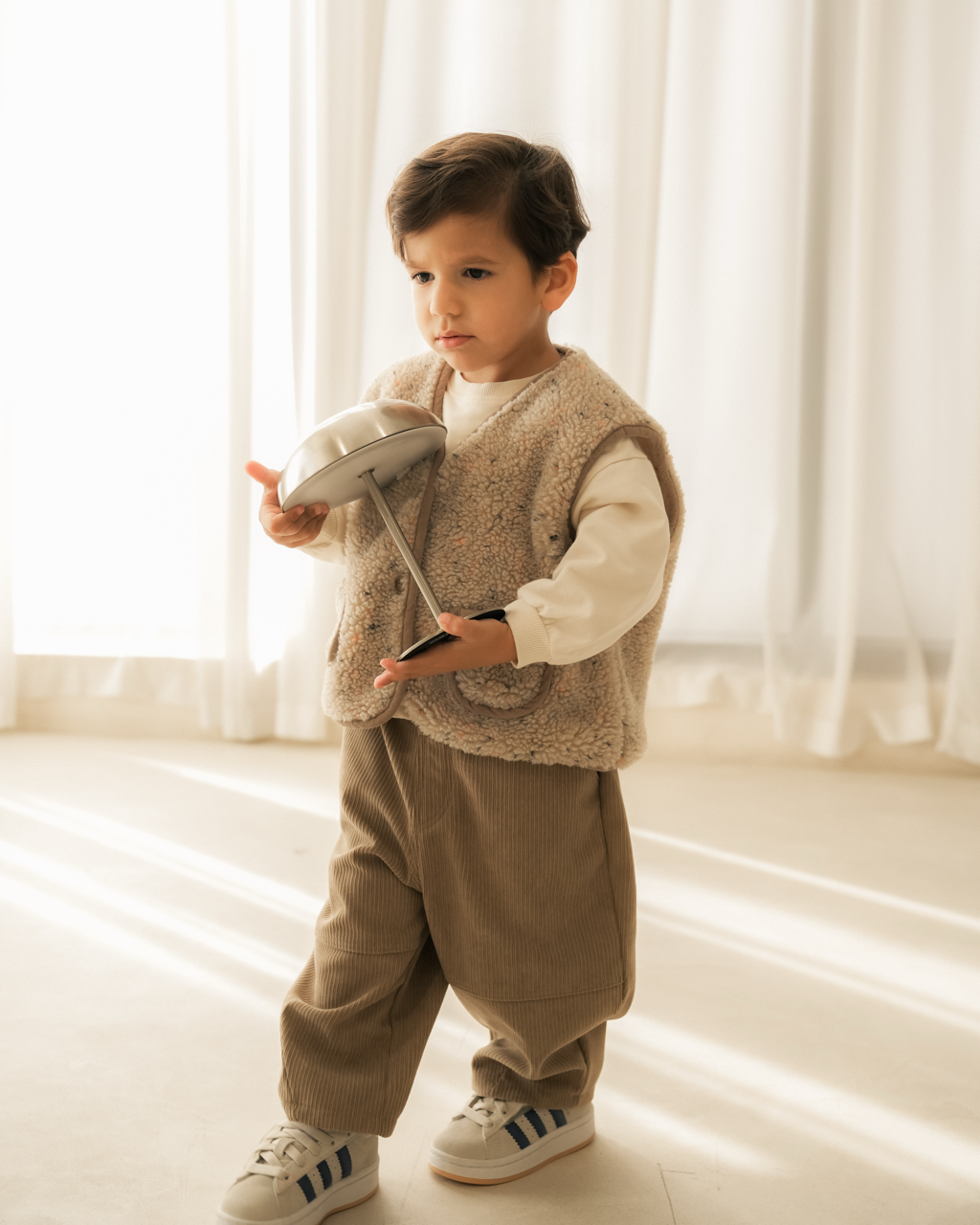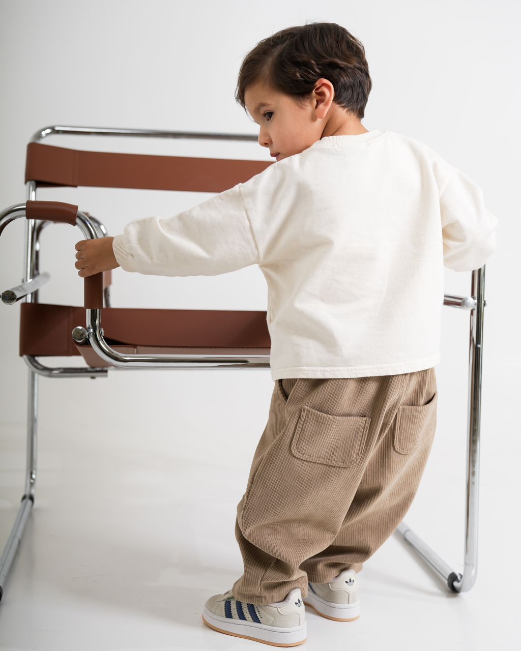 Minimalistischer Oversize-Pullover in einem ruhigen Cremeton. Aus 100 % Baumwolle gefertigt, ist er bequem und vielseitig kombinierbar. Ein zeitloser Winterklassiker für Jungen. Elegant, weich und ideal für entspannte Winter-Looks.