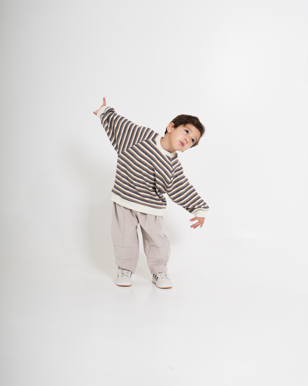 Gestreepte sweater in zachte aardetinten, gemaakt van een comfortabele rekbare kwaliteit met een zachte touch. De relaxte oversized fit geeft een moderne en verfijnde uitstraling, terwijl het design moeiteloos samengaat met de rest van de wintergarderobe.